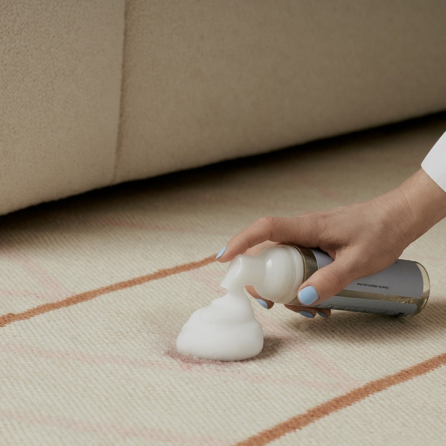 用乾淨的布小心地清除所有鬆散的污垢以後,將產品泡沫均勻噴灑在污漬上。讓泡沫滲入織物後用乾布輕輕擦拭污漬。完成清潔後,將織品香氛噴霧均勻噴灑在織物上,以消除不良氣味。 使用後,讓布料完全風乾,以便散發出橙花雪松的天然香味。