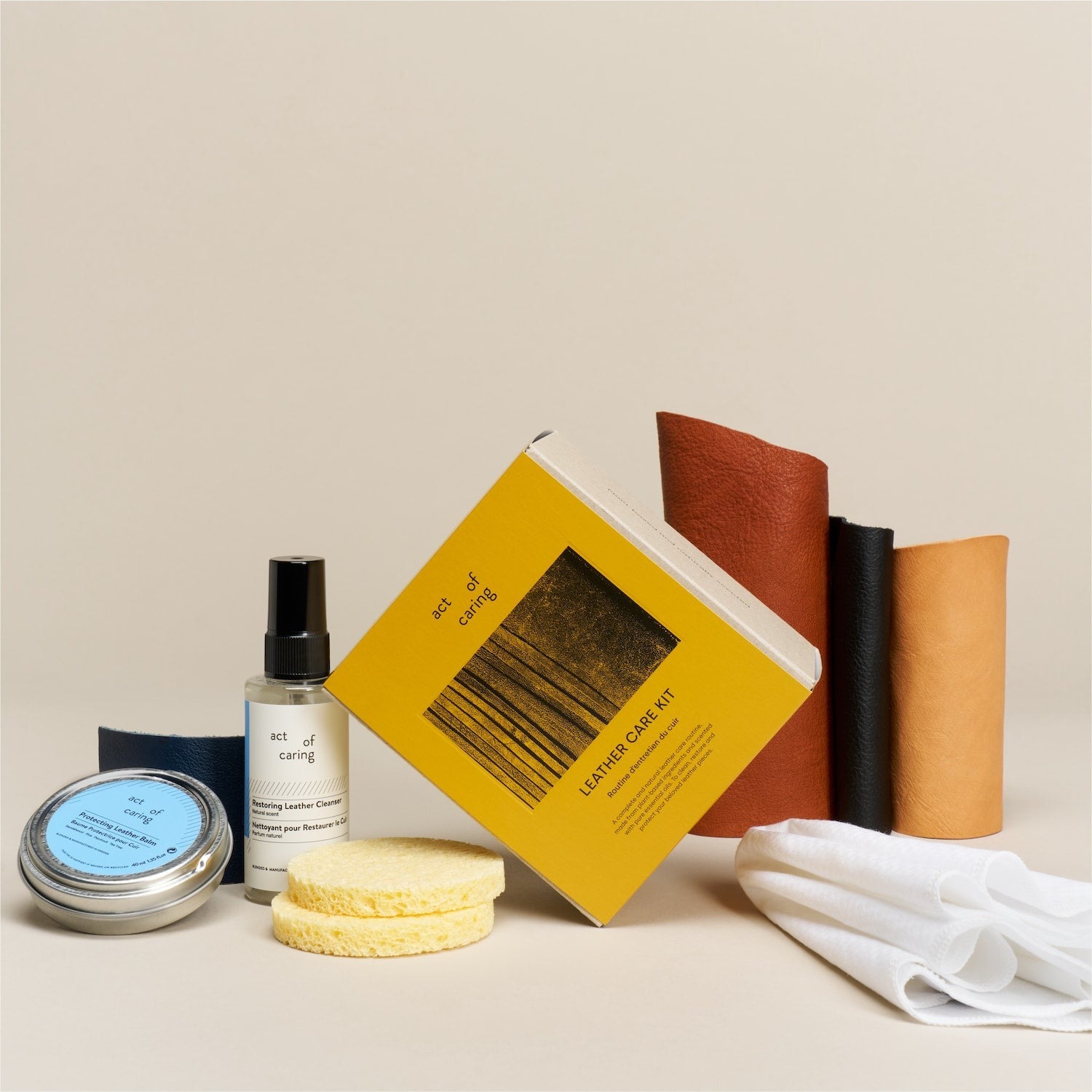 Act of Caring是一個來自瑞典的家居品牌,他們的理念為透過物品的「護膚」流程讓產品更加永續,減少浪費。另外,針對不同的材質研發出對應的清潔及保養流程,如同不同膚質有不同的清潔保養。