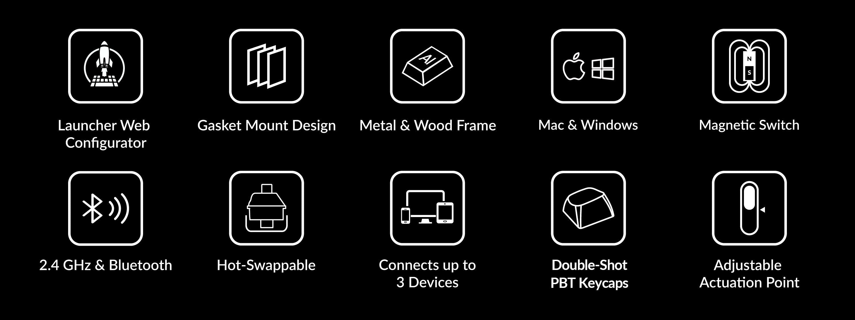 完全可自訂的 75% 佈局無線鍵盤,帶有磁性開關,這是開關技術的突破,它使用磁性感測器而不是物理接觸來測量驅動深度,讓您完全控制每個開關的響應。