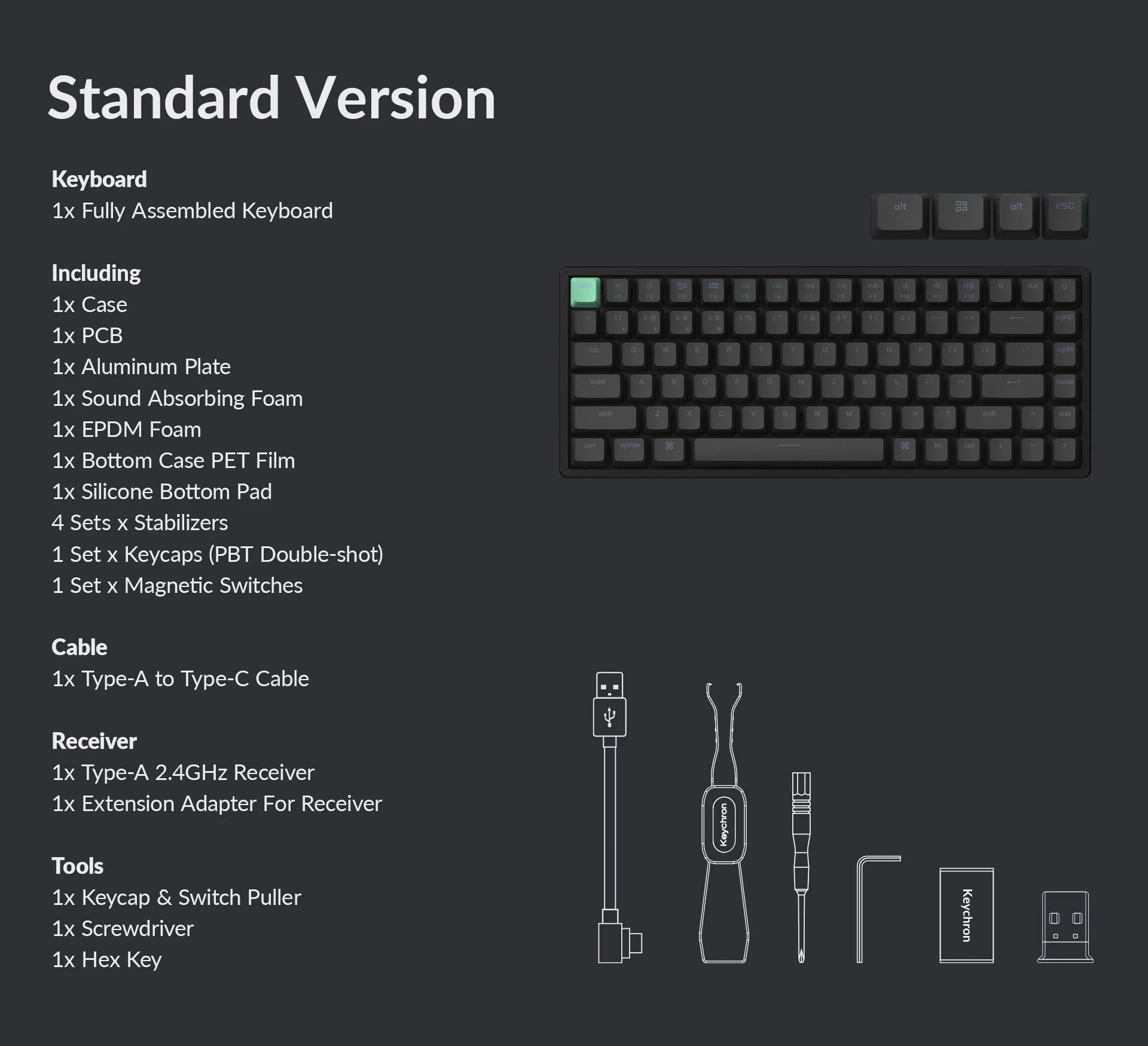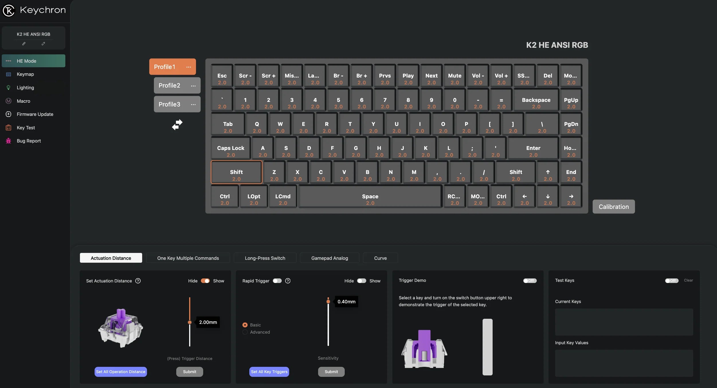 *K2 HE 僅與 Keychron 網站上出售的雙軌磁性開關相容。