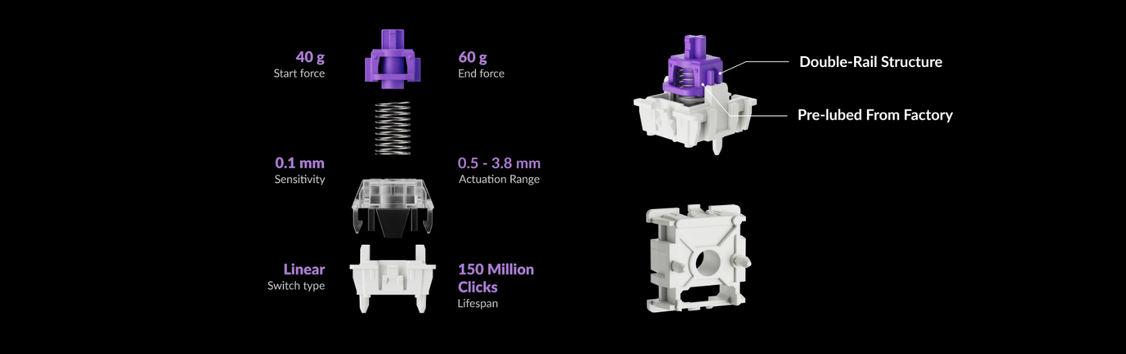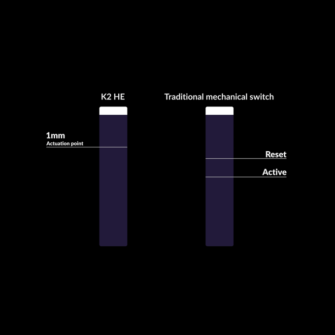 與傳統的機械軸不同,磁軸使用壓敏霍爾效應感測器來檢測按鍵,這意味著您可以以 0.1 毫米的精度設定每次按鍵的接合深度。