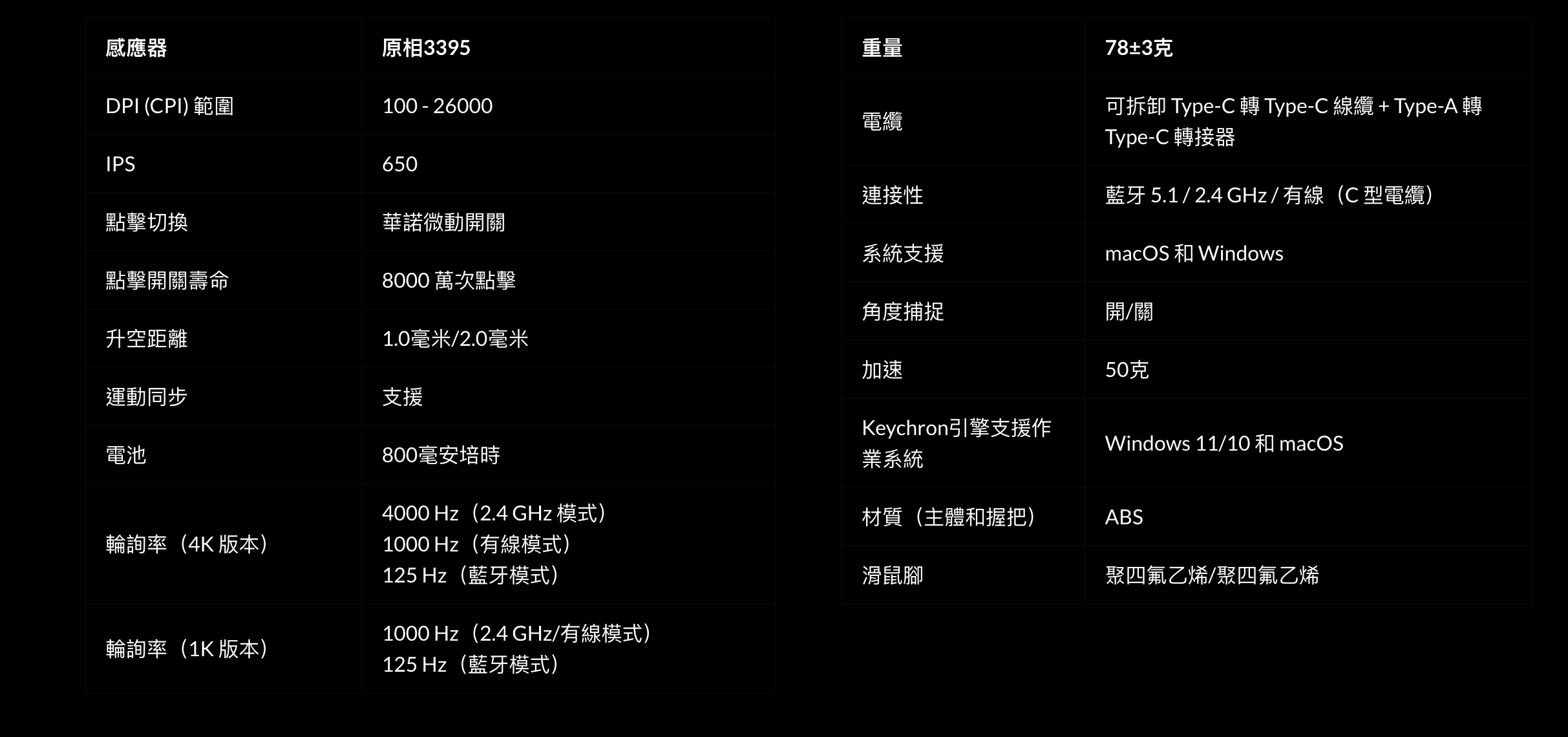 Keychron Engine 軟體可讓您進行更多個人化操作,修改按鍵、設定快速鍵,甚至您的專用巨集;您也可以對LOD、輪詢率、DPI等進行專業設定。