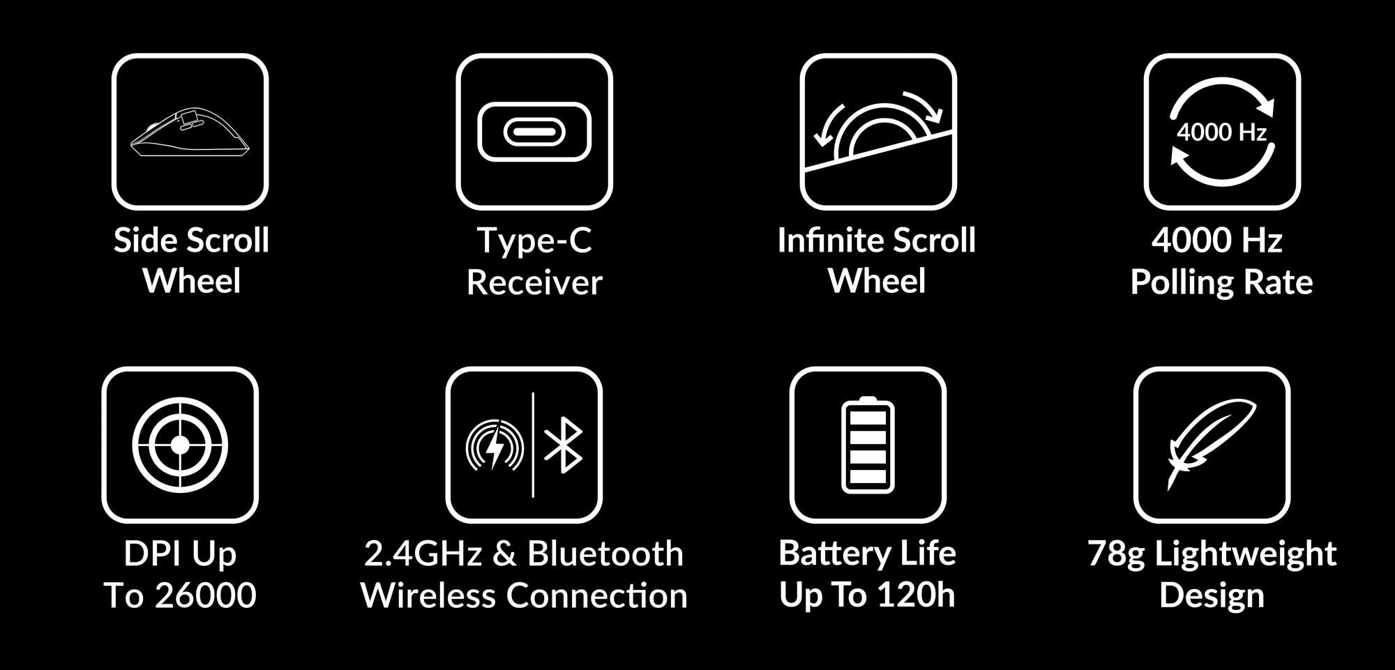 除了標準的向上和向下滾動之外,中間輪還提供兩個額外的導航維度 - 向右或向左傾斜以實現精確的、點擊到點擊的水平滾動。