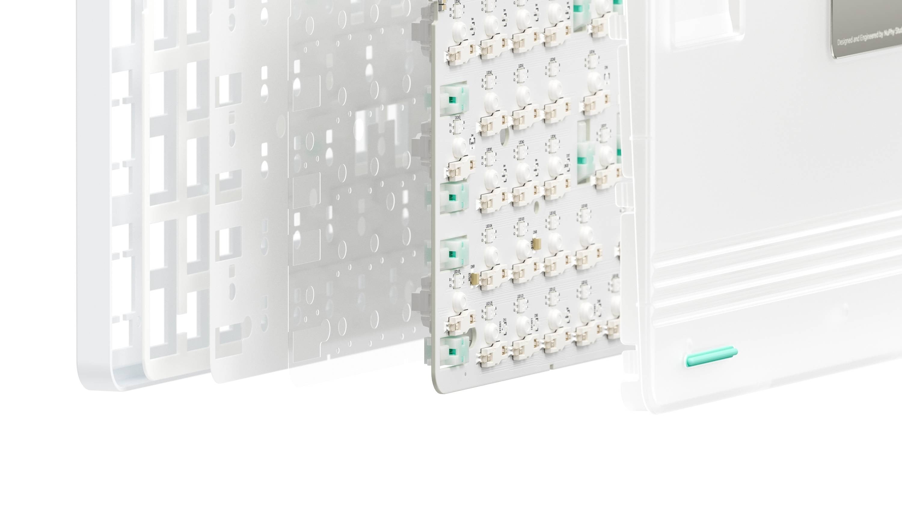 從 PCB 到電池,內部組件的顏色都與鍵盤的顏色主題相匹配,再加上現在的波浪形“Ionic”底部溝槽,散發出層次分明、細緻入微的氛圍。 最重要的是,燈條眼鏡鍍有薄金屬層,以增強其與整體外觀的一致性和耐用性。
