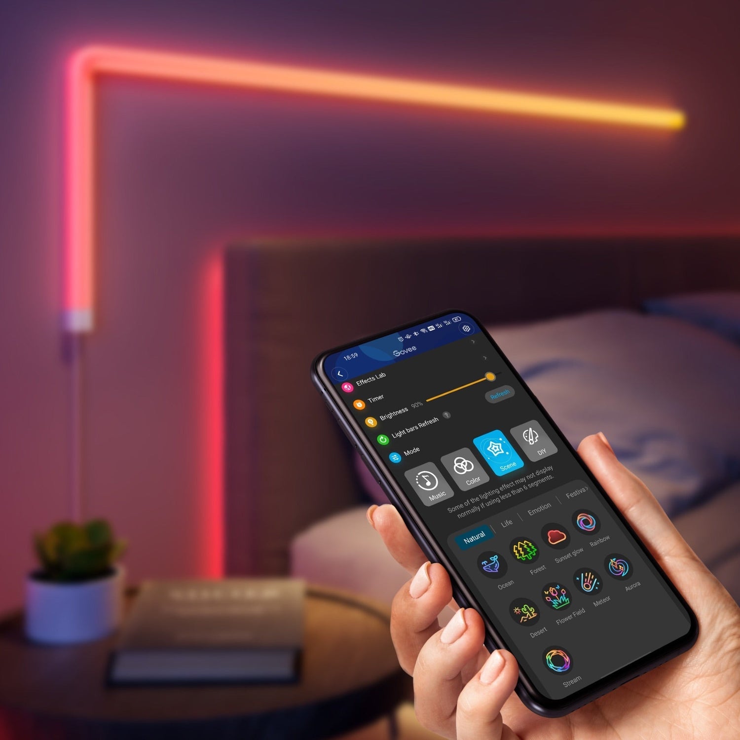 想要打造一個更令人印象深刻的遊戲室嗎? 憑藉迷人的燈光效果、可自訂的佈局和時尚的外觀,Govee Glide 一定能做到這一點。 這是突出任何功能、補充現有配色方案並將您的房間設計提升到新水平的完美方式。