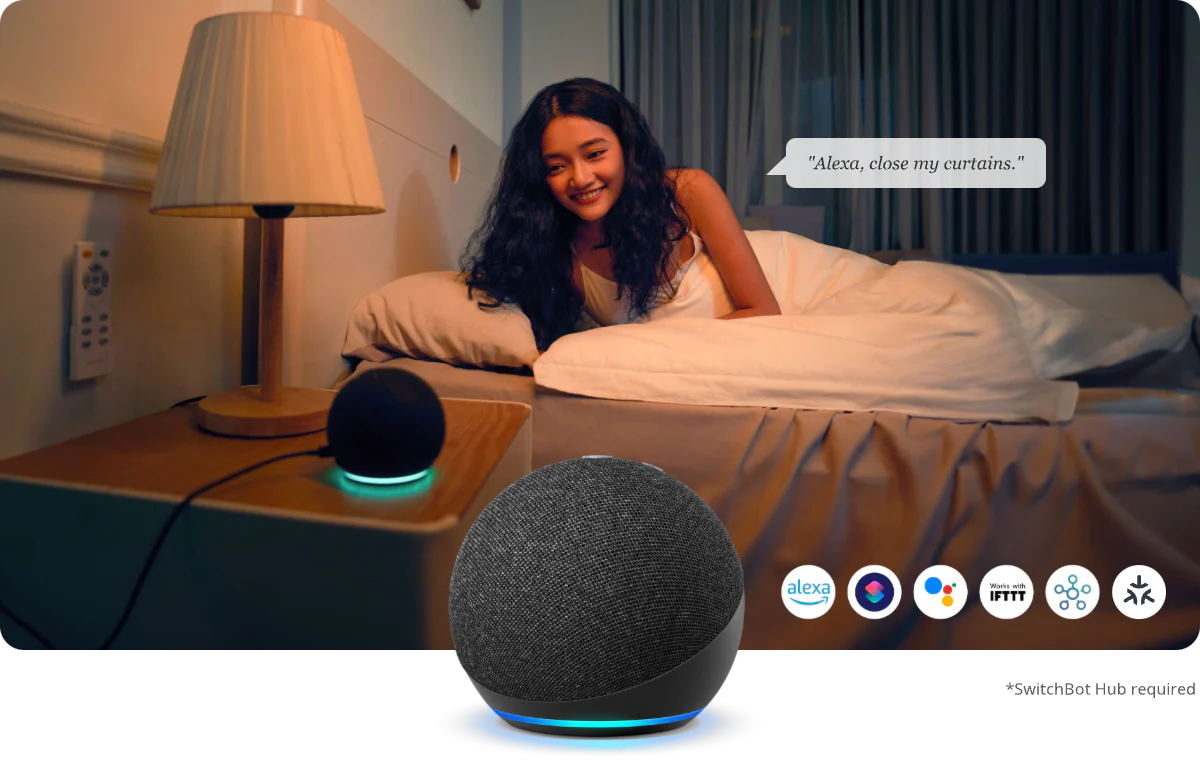 語音控制(需要 SwitchBot Hub)不受限制:Amazon Alexa 、Google Assistant、Siri 捷徑、SmartThings、IFTTT