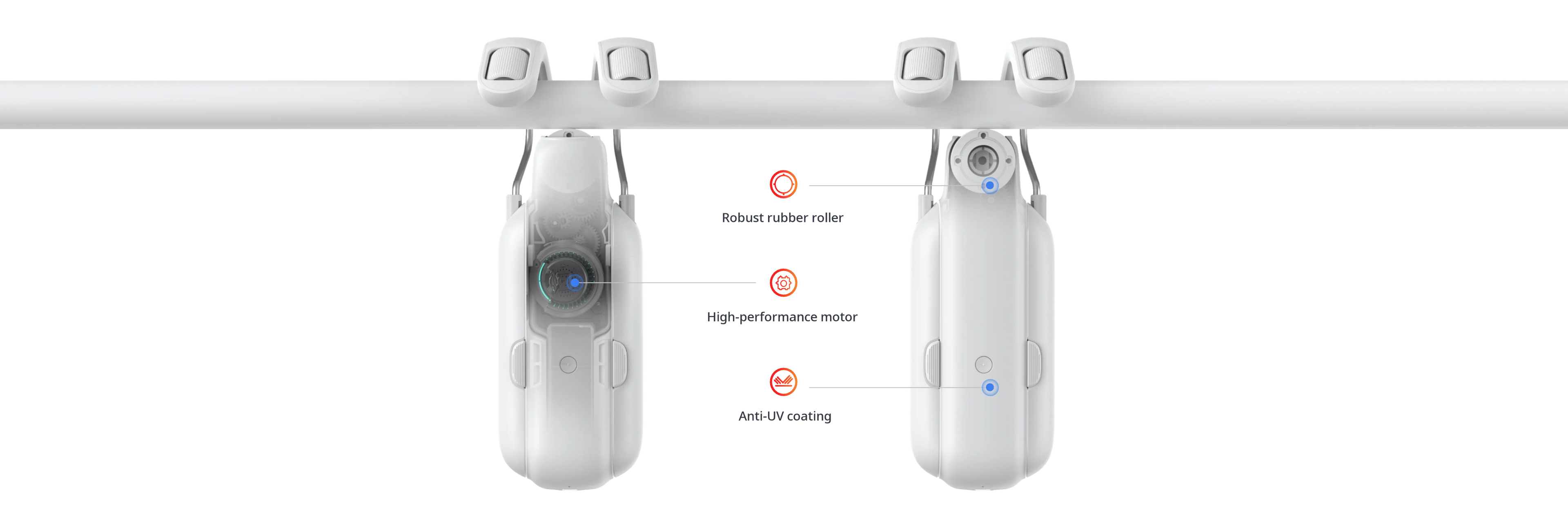 2. 電池壽命在 3 公尺長軌道上每天打開和關閉 8 公斤(17 磅)窗簾一次、溫度為 25 ℃ 的條件下進行測試。實際電池壽命可能有所不同。