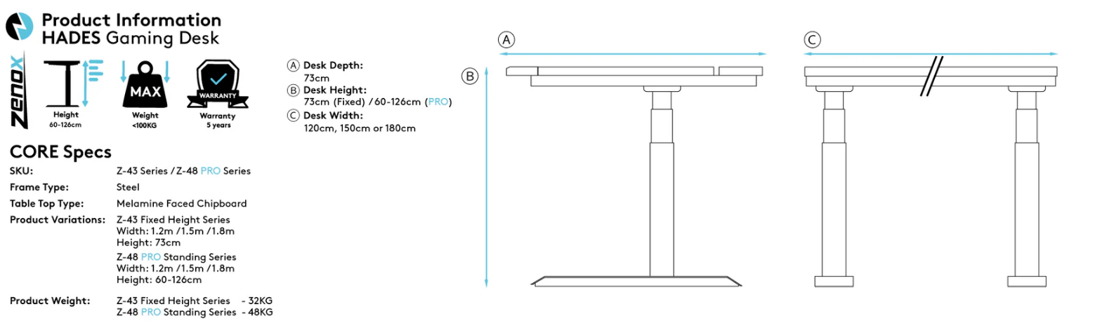 Zenox Hades Pro 冥王電競枱 (升降版)